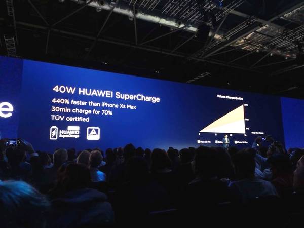 至于充电方面,这次华为可以说是非常出彩了,4200mAh的电池搭配40W的快充,甚至还有15W的无线快充,甚至支持反向无线充电,iPhone XS就算使用PD快充,依旧不是Mate 20 Pro的40W快充的对手。