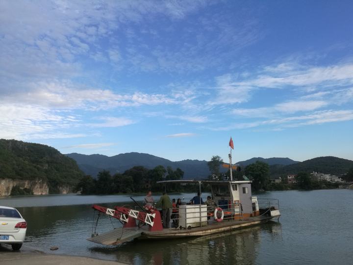 夫夷河上的堡口渡口。时代在进步,以前人工划船过河,现在都是县海事配备的新型轮渡船