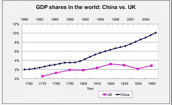 GDP占世界比重:中国VS英国