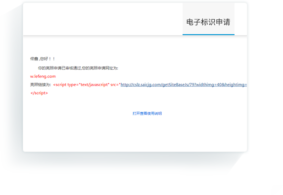 • 可按照邮件的使用说明,将电子标识添加到网站首页下方的醒目位置